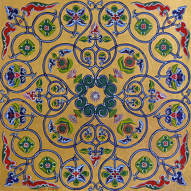 Folliage and scrolls decorative design. Illumination inspired by the epititlos of a manuscript from Mount Athos.