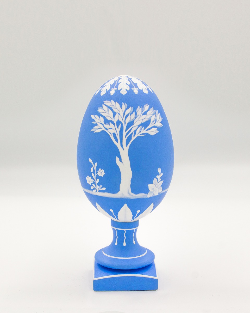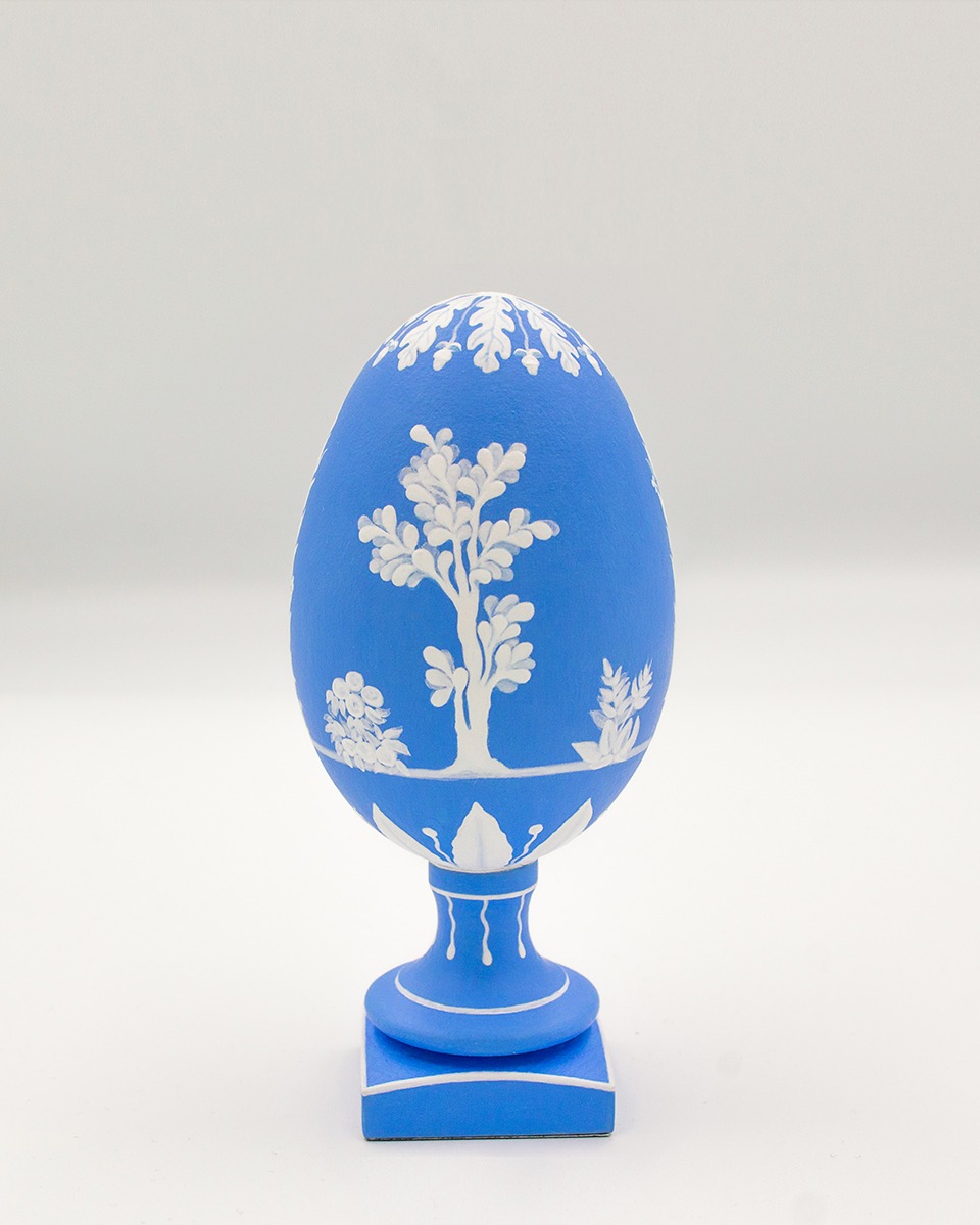 Kyanomorpha is a series of painted eggs with two dominating colours, as the name suggests: kyano (blue) and white. The technique is similar to pâte-sur-pâte of the porcelain decoration. A short film was created during the process. Watch how these hand-painted eggshells were made: “Creating Forms”.