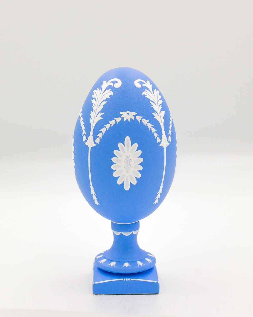 Kyanomorpha is a series of painted eggs with two dominating colours, as the name suggests: kyano (blue) and white. The technique is similar to pâte-sur-pâte of the porcelain decoration. A short film was created during the process. Watch how these hand-painted eggshells were made: “Creating Forms”.