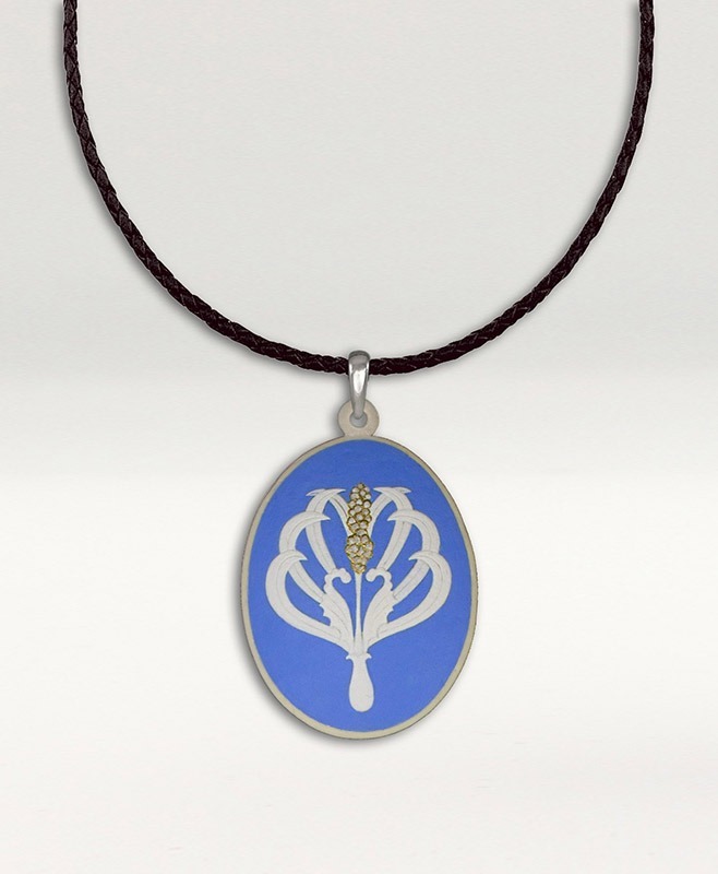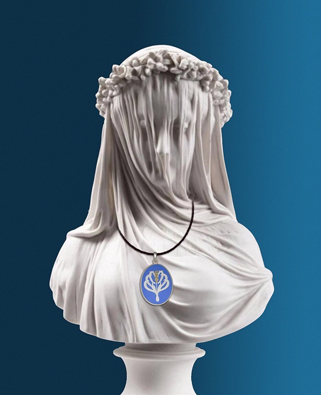 This eggshell-pendant, inspired by ancient Greece artifacts, is part of the collection of ostrich eggshell pendants. A unique hand-painted small treasure for your jewellery collection. This piece will drive you to explore myths and artworks of the past.