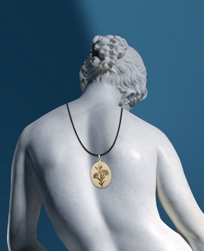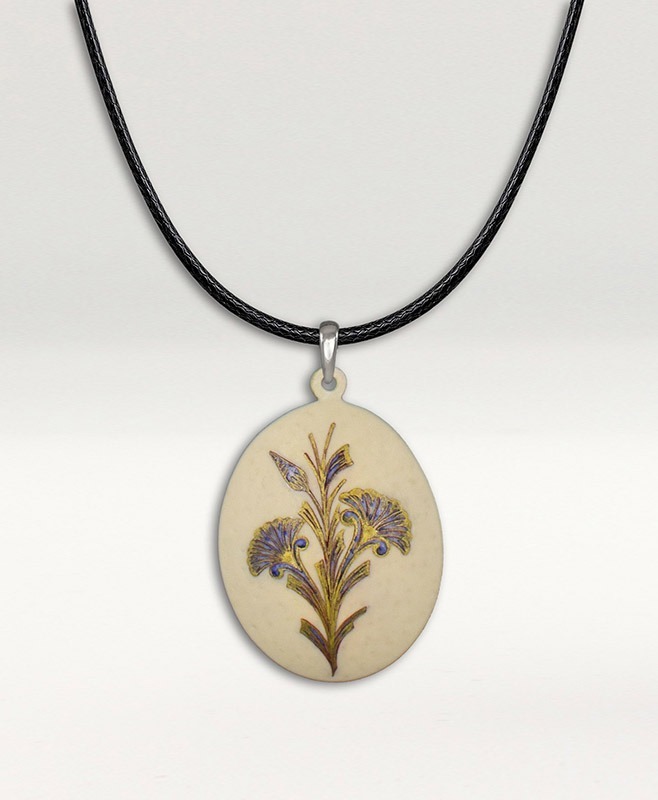 The art-nouveau inspired eggshell-pendant is part of the collection of ostrich eggshell pendants. A unique hand-painted small treasure for your jewellery collection.