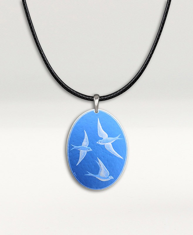 This eggshell-pendant, inspired by ancient Greece artifacts, is part of the collection of ostrich eggshell pendants. A unique hand-painted small treasure for your jewellery collection.