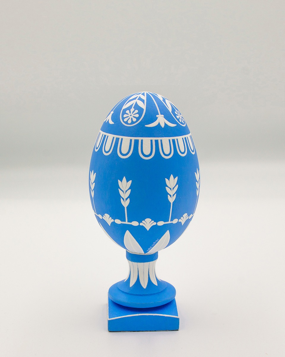 Kyanomorpha is a series of painted eggs with two dominating colours, as the name suggests: kyano (blue) and white. The technique is similar to pâte-sur-pâte of the porcelain decoration. A short film was created during the process. Watch how these hand-painted eggshells were made: “Creating Forms”.