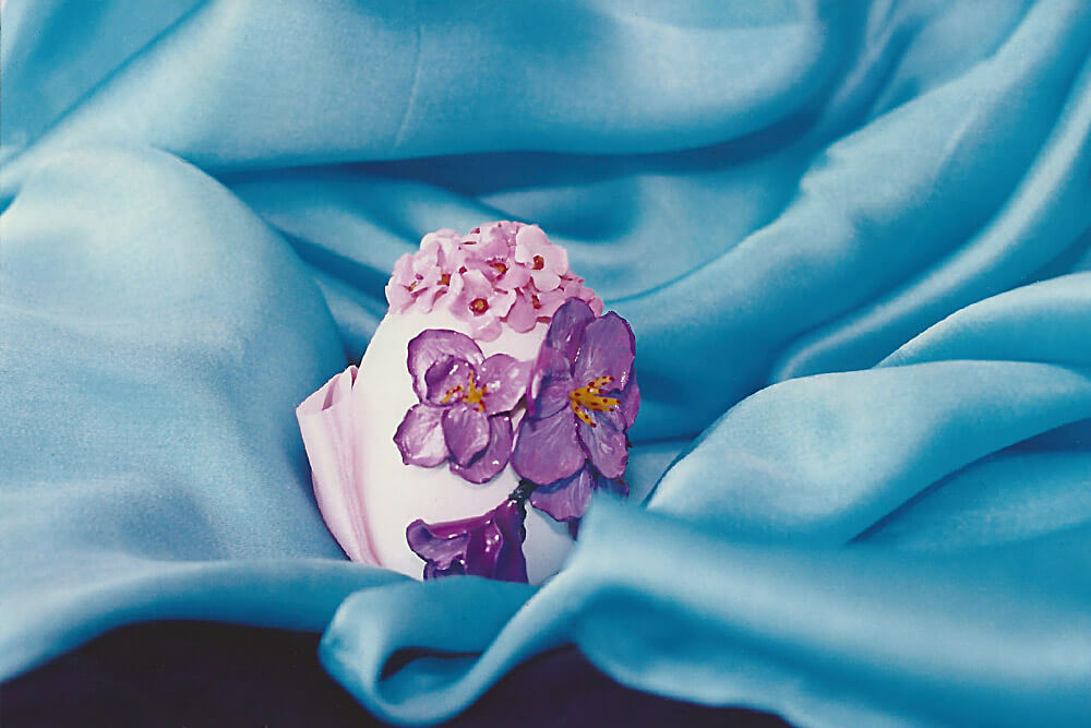 A scent from spring blossoms with this miniature sculpture. The egg is glued and standing on a polymer clay ring. Polymer clay is also used for the tiny flowers, which are later overpainted with acrylics. It is sealed with a coat of crystal clear UV resistant varnish.