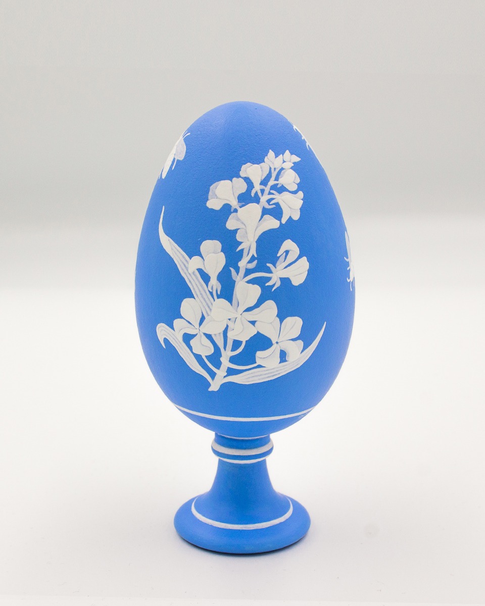 Kyanomorpha is a series of painted eggs with two dominating colours, as the name suggests: kyano (blue) and white. The technique is similar to pâte-sur-pâte of the porcelain decoration. A short film was created during the process. Watch how these hand-painted eggshells were made: “Creating Forms”.