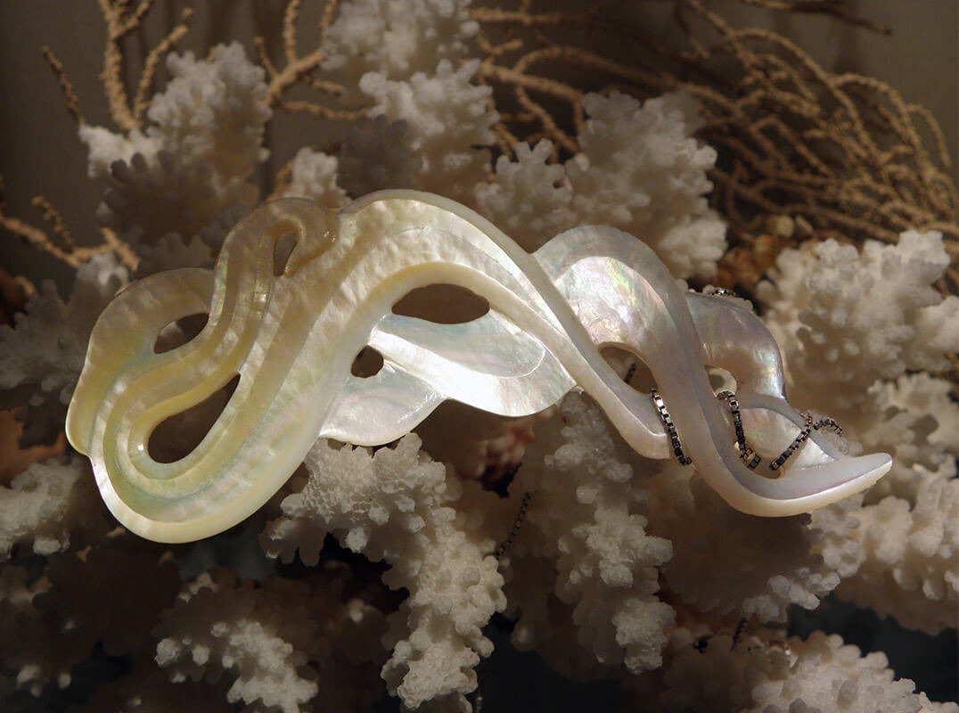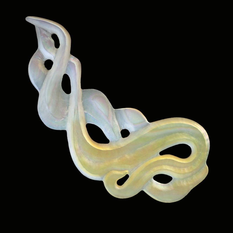 A hand-carved and very large mother-of-pearl wavy pendant.
